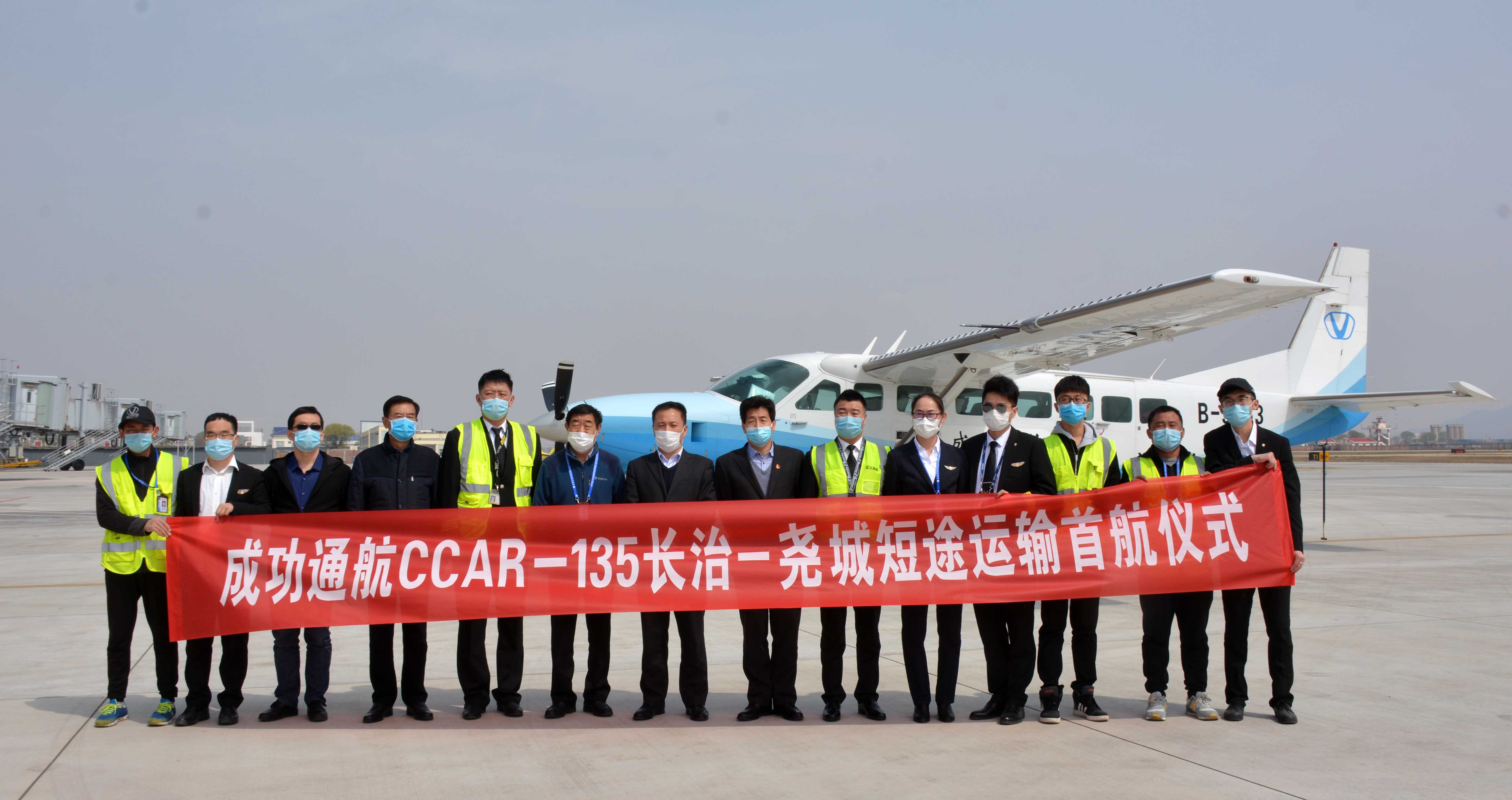 2020.3.27日上午10:46,成功通航一架C-208B型飞机(航班号:VU202)自太原尧城机场起飞,经过44分钟的飞行后,在长治王村机场降落。此次飞行不但是我省短途运输航班复工后的首飞,也是成功通航获批CCAR-135部资质后的首次飞行,具有较为重要的意义。据成功通航负责人介绍,我省是全国通用航空示范省,在省委省政府的领导下,培养扶持了一批有规模、有特长、有担当的通用航空企业。成功通航承担我省长治至太原尧城往返短途客运航线,填补了省内通航企业承运客运航线的空白。从通航产业层面来讲,短途运输作为运输航空的有力补充,不但以优惠的票价、便捷的服务,为寻常百姓带来别样的飞行体验,还将大力助推通航产业全面发展;从成功通航自身来说,短途运输将成为该公司又一主营业务,在服务大众的同时,也为企业提供了更加广阔的发展空间。