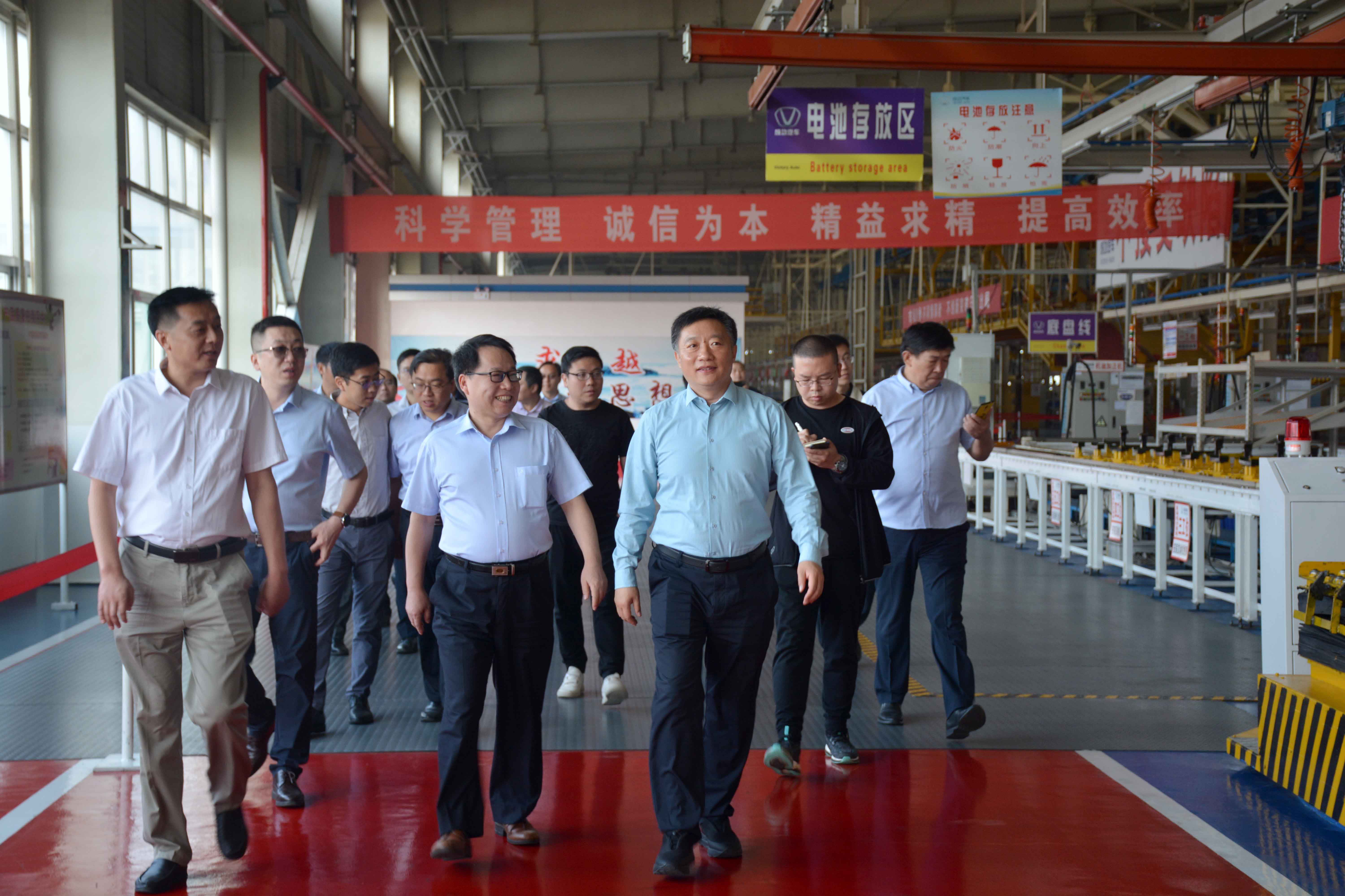 参观期间,长治市政府秘书长桑利刚陪同法国液化空气中国投资有限公司董事会主席路跃兵一行首先在成功汽车冲压线倾听了成功汽车总经理助理吴丰对williamhill官网三大板块基本概况介绍,同时还就成功汽车冲、焊、涂、装四大生产线的设备、工艺和生产能力情况详细进行了说明。法国液化空气中国投资有限公司董事会主席路跃兵在参观过程中与长治市政府秘书长桑利刚、成功汽车总经理许宏泉等进行了友好的交流,尤其对产品、车型、市场等相关方面的问题进行了认真的沟通。法国液化空气中国投资有限公司董事会主席路跃兵在交流与沟通中,不仅了解了成功汽车的总体运行情况,而且饶有兴致地参观了成功新能源物流车及成功全系车型,认为成功汽车全系车型很有特色,特别是新近开发的换电式出租车、地摊“移动店铺”,希望成功汽车会随着国家经济逐渐回升,抓住机遇,创新思维,走出困境,取得好的经济效益。