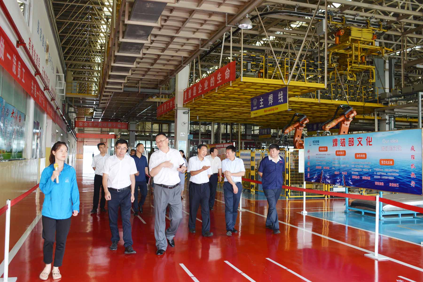 随后,在williamhill官网常务副总裁马帅和有关职能部门负责人的陪同参观了成功汽车,首先在成功电动汽车换电服务平台观摩了成功汽车“企鹅”牌出租车换电演示,并专程到成功汽车400数据服务平台中心详细了解了成功汽车售后服务网络相关的数据管理情况。在成功汽车二楼会议室,中国邮政长治分公司总经理王宝明、邮储银行长治分行行长田鸥一行观看了成功汽车及成功能源《宣传片》,围绕新能源汽车换电模式的优势、新能源出租车未来前景、市场需求、销售服务等方面内容进行了深入的探讨与交流。而后又对成功汽车冲压、焊装、涂装、总装四大工艺生产线实地进行了参观。此次成功汽车还专门在总装车间车辆展示区为中国邮政特别定制了“邮政服务车”,赫然炫丽,醒目抢眼。