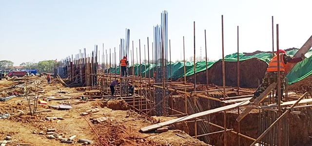 据了解,目前项目工程具体进度:1、A轴(东面)21―26轴立柱、梁、墙板钢筋绑扎,支模、浇筑商砼;2、A轴(东面)16―21轴立柱、梁、墙板钢筋绑扎、支模、浇筑商砼;3、A轴(东面29―36)轴牛腿柱、斜柱、框架梁钢筋绑扎支模,浇筑商砼;4、A轴(东面)1―9轴基础开挖9个;5、N轴(西面)26―29轴基础钢筋绑扎、支模、浇筑商砼。依据能投物流园整体规划,由遣调骨干组成的项目办将抓紧建设储煤棚,力争按计划如期推进。