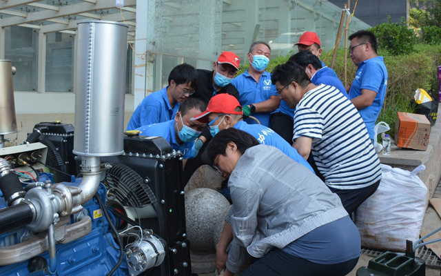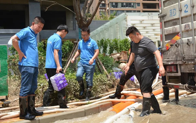 7月26日,成功救援队进入援助现场第三天,在郑州气温回升最高温度31度的的烈日下,救援队员们依旧不辞辛苦,随时检查设备运行情况,及时补充油料,积极展开救援行动。