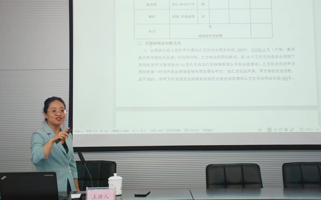 本次活动的主讲嘉宾来自山西英佳律师事务所毛莉律师。毛莉律师是williamhill官网多年的法律顾问,熟悉集团业务也有丰富的法律实践经验。毛律师深谙教育理念,知道“唯有实践出真知”的道理。本次培训中,她以《从律师的视角看待合同文本》为题,放弃了枯燥法律条款的普及,而是以过往汽车公司销售合同作实例为范本进行逐条详细讲解。