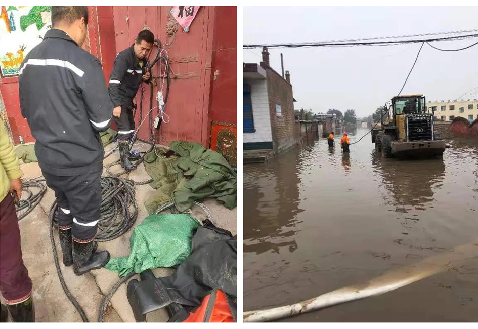 转眼已与洪水奋战四天啦,八台水泵像八条巨龙一样,欢快的向外排水,灾区李家庄的房屋逐渐的显出原貌,灾民高兴的返家察看灾情、清理杂物、收拾家财……看着这一切,什么卧门牙,打地铺,吃泡面,抵严寒一切都是那么的值得,那么欣慰。