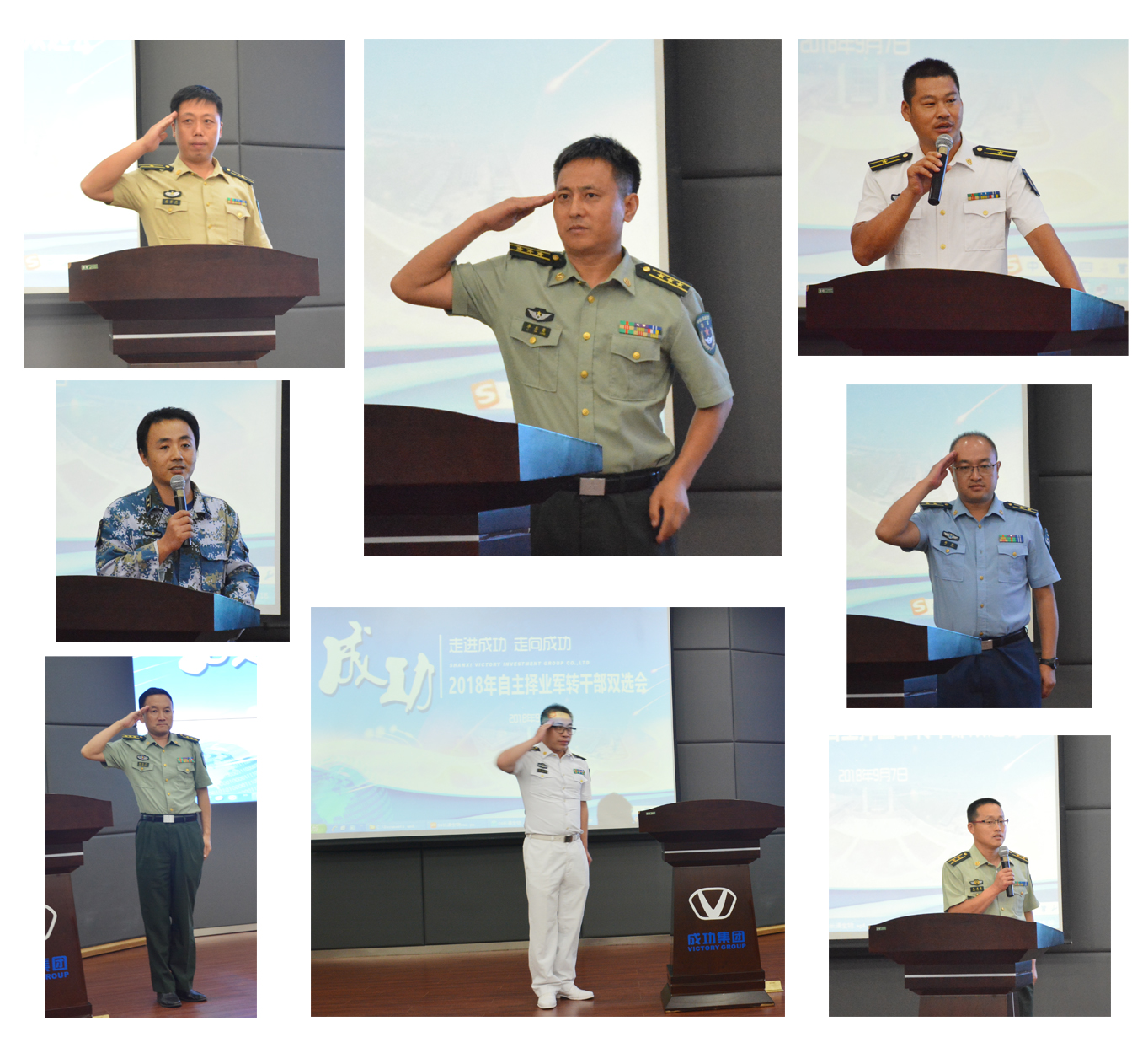 双选会上,原武警助理工程师张春林、原海军航空兵学院工程师王宏、原火箭军助理工程师梁雪强等军转干部分别上台,一个个标准的军礼就像军魂一样感染着现场所有的人,一波一波的军礼顷刻之间化作无形的动力催发了一种浩然正气……军转干部各自介绍了从军的简历并表达了自己的心愿,走进成功,了解成功,更愿选择成功走向新的成功。此后这些军转干部分别与成功通航、成功汽车、联盛和长清生物、长清科技等公司负责人进行了洽谈与交流。
