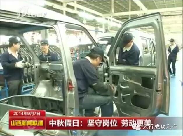 2014年9月7日《山西新闻联播》报道, 2014年中秋节,成功汽车为了完成订单任务,员工放弃与家人团聚机会,仍坚持一线照常工作,用自己的辛勤付出,奏响劳动者最美之歌。