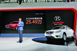 北汽新能源旗下首款A级纯电动轿车EU260正式亮相并接受预订,售价25.49万元(以北京为例,扣除两级补贴10.8万元,补贴后价格14.69万元)。EU260不仅搭载全新的“i-link智能网联”系统,其“乐享版”车型还带有北汽新能源与乐视联合开发的车联网应用,成为国内首个融入互联网生态系统的新能源汽车